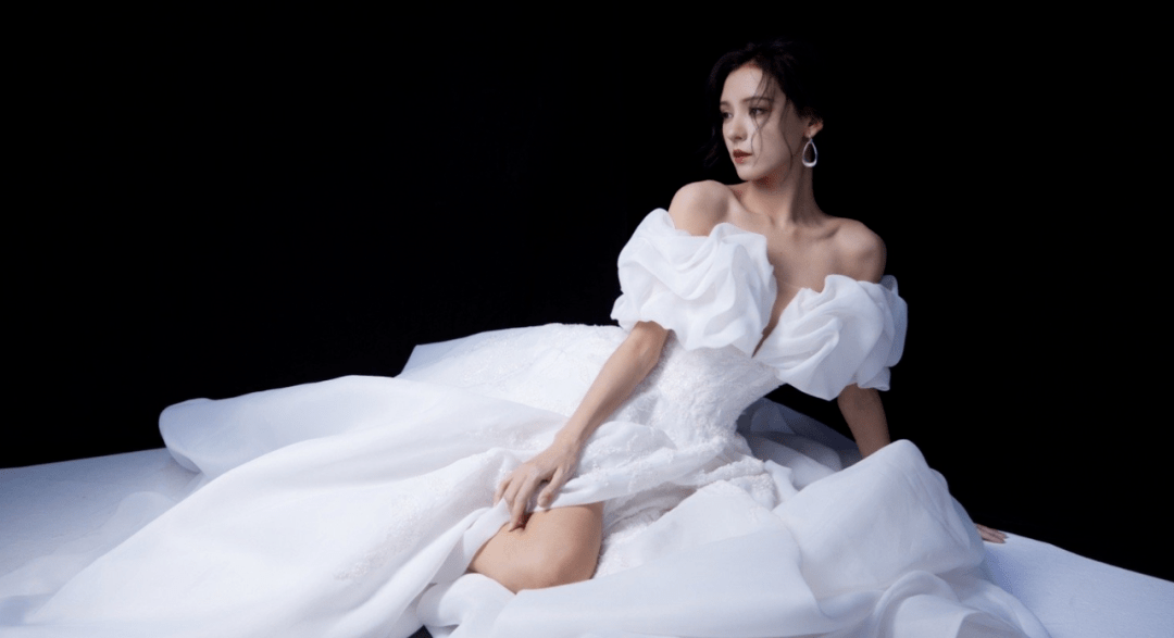 除此之外,蒋依依还有一套白色的礼服,不过这套裙子比较平平无奇,没什么亮点。