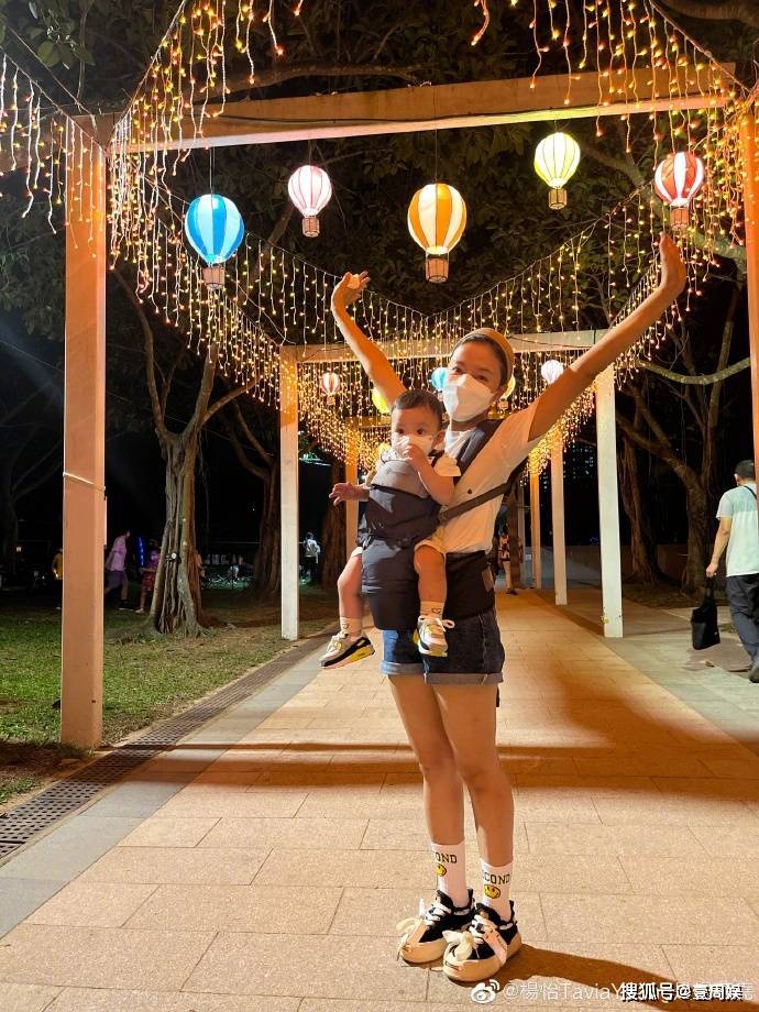9月11日,杨怡在社交平台晒出一则动态,是他们一家人出门去看花灯,度过中秋节的尾巴,于是杨怡也不忘给网友晒照,分享中秋节的喜悦。