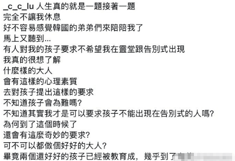 搜狐娱乐讯 2月12日凌晨,袁惟仁前妻再发文,控诉袁惟仁的遗属通过孩子转达,希望她不要去灵堂和告别仪式。