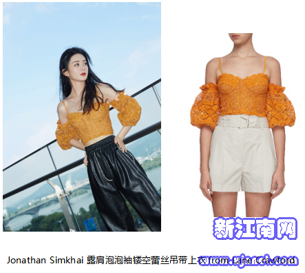 赵丽颖黄色一字肩上衣BY连卡佛Jonathan Simkhai,其以宛若胸衣外穿般的版型带来丝丝时尚摩登感与优雅女人味。略显丰盈挺括的泡泡袖与镂空蕾丝设计则更显可爱少女感,结合清新亮眼的驼色调,助你轻松打造充满青春活力的减龄造型。